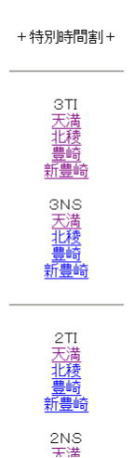メニューから「特別時間割」を選択すると、この画面に切り替わります。 |