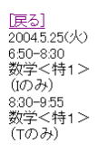 授業が組まれている日を選択すると、この画面が表示されます。 2科目以上授業が組まれていることもありますので、 必ずこの画面を開いて確認して下さい。 |